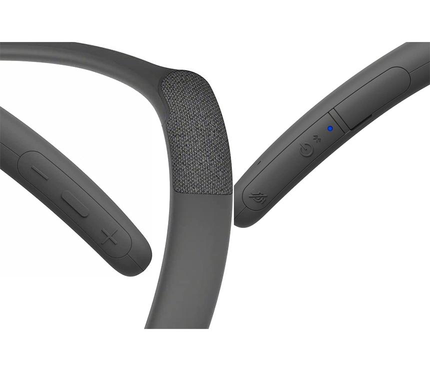 Loud voices, quiet voices, calls are a mix of pitch and tone. You can easily control volume to a level that’s comfortable for you by touching the volume button on the side of this Sony neckband speaker. You can also play and pause when listening to music.